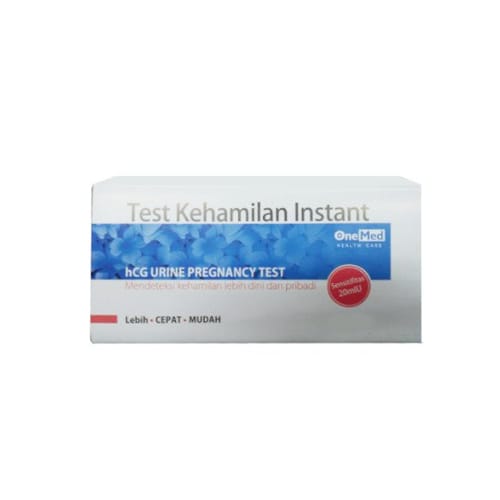 OneMed Test Kehamilan Instant adalah alat uji kehamilan berbentuk strip. Alat ini bekerja dengan mendeteksi hormon hCG (human chorionic gonadotrophin) dalam urine yang kadarnya akan meningkat pada saat awal kehamilan. Hasil bisa didapatkan dalam waktu 1–3 menit dengan tingkat akurasi 99%.