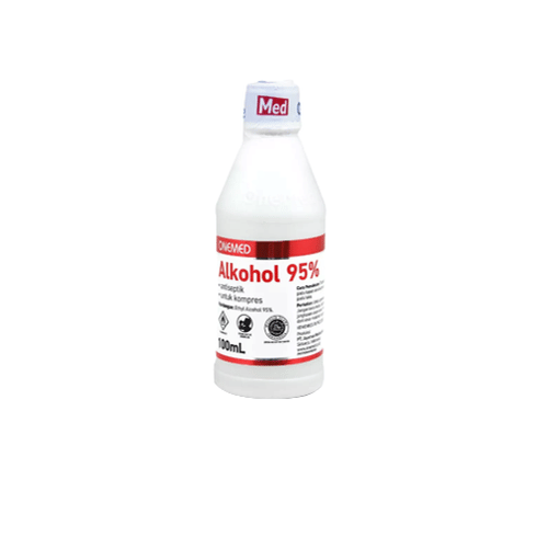 Onemed Alkohol 95% 100 Ml digunakan sebagai cairan antiseptik untuk menghambat pertumbuhan bakteri atau mikroorganisme