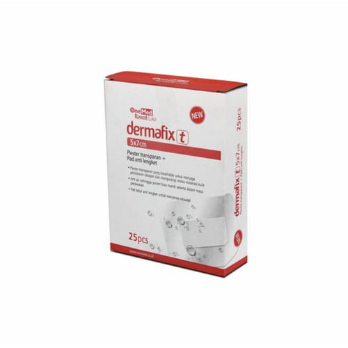 Onemed Dermafix T adalah plester transparan steril kedap air yang dilengkapi dengan bantalan untuk menutup luka kecil.