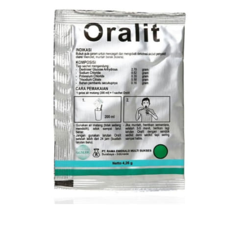 Oralit Sachet bermanfaat untuk mencegah dan mengobati dehidrasi akibat diare, mencret, atau muntaber.
