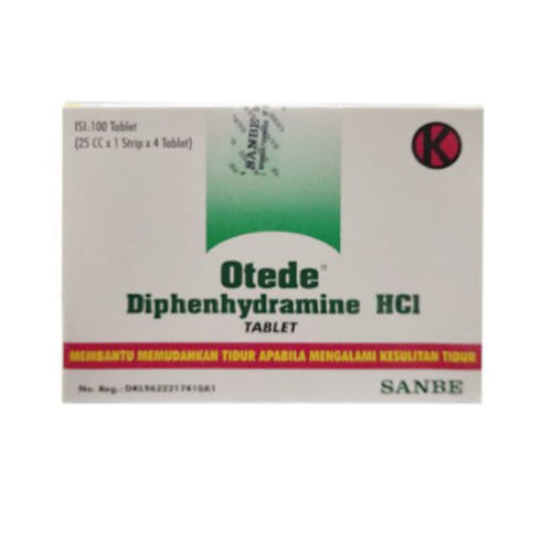 Otede Tablet mengandung diphenhydramine. Obat ini dapat menghambat produksi histamin, yakni zat yang dapat menghasilkan reaksi alergi. Selain itu, Otede Tablet juga bisa menimbulkan kantuk sehingga dapat digunakan untuk membantu mengatasi insommnia dan mencegah mabuk perjalanan.