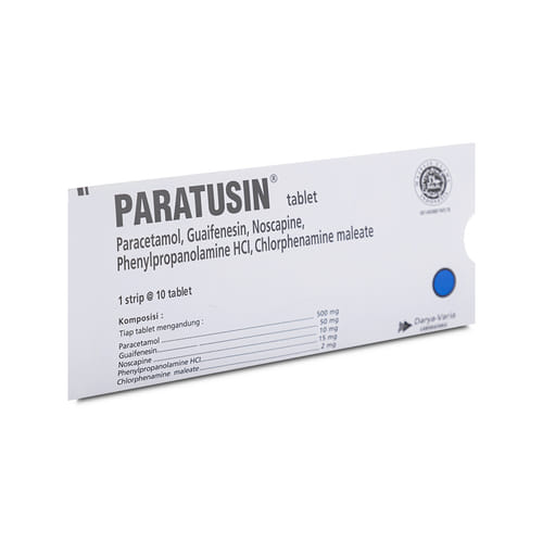 Per tab Noscapine 10 mg, Chlorpheniramine maleate 2 mg, Glyceryl guaiacolate 50 mg, Paracetamol 500 mg, Phenylpropanolamine HCl 15 mg.