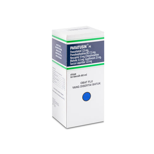 Per 5 mL : Noscapine 10 mg, Chlorpheniramine maleate 2 mg, Glyceryl guaiacolate 25 mg, Paracetamol 125 mg, Succus liquidum 125 mg, Pseudoephedrine HCl 7,5 mg.