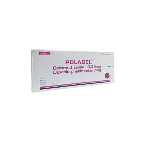 Polacel mengandung zat aktif Betamethasone. Tersedia dalam bentuk tablet yang didistribusikan oleh Medikon Prima. Produk ini digunakan untuk meredakan gejala-gejala alergi pada pernafasan, kulit & mata.