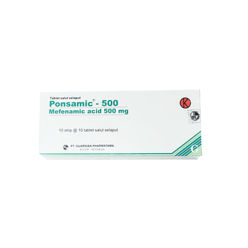 Ponsamic 500 mg Tablet bermanfaat untuk meredakan nyeri akibat cedera, sakit gigi, nyeri haid, sakit kepala, atau radang sendi.