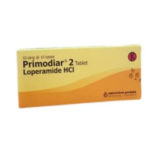 Primodiar 2 mg Tablet mengandung loperamide yang bekerja dengan cara memperlambat gerakan usus. Dengan begitu, frekuensi buang air besar bisa berkurang dan feses menjadi lebih padat saat keluar.