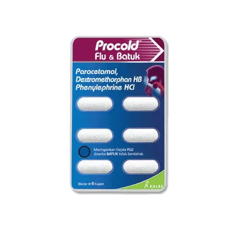 Procold Flu & Batuk 6 Tablet merupakan obat yang mampu membantu meringankan gejala flu seperti demam, bersin-bersin, hidung tersumbat, sakit kepala, dan batuk tidak berdahak.