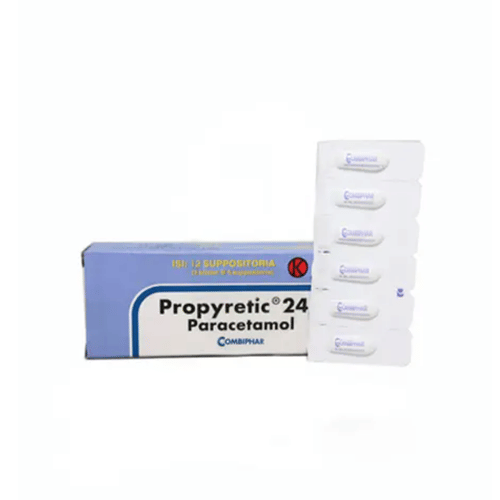 Propyretic Suppositoria 240 Mg merupakan obat golongan analgesik dan antipiretik yang diberikan melalui dubur pasien. Propyretic Suppositoria 240 Mg diproduksi untuk membantu pasien yang tidak memungkinkan meminum obat secara oral. Pada setiap tablet Propyretic Suppositoria 240 Mg mengandung paracetamol 240 mg. Propyretic Suppositoria digunakan untuk meredakan nyeri dan demam.