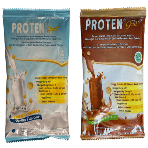 Proten Gold Rasa Vanilla Granul merupakan bahan pangan untuk keperluan medis khusus untuk kondisi malnutrisi.