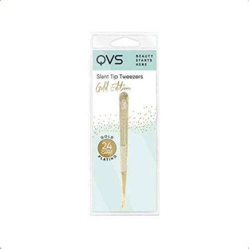 QVS Slant Tip Tweezers Gold bermanfaat sebagai alat khusus untuk mencabut bulu, alis, dan rambut.