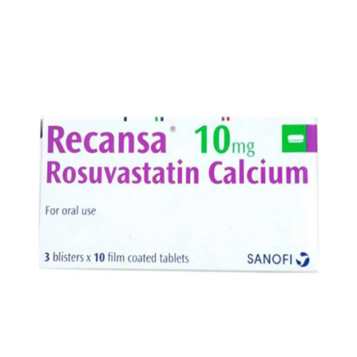 Recansa 10 mg Tablet mengandung rosuvastatin. Obat ini mengurangi kadar kolesterol dalam darah dengan cara menghambat enzim di hati yang memproduksi kolesterol.
