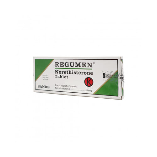 Regumen 5 mg merupakan obat dengan kandungan Norethisterone, yang merupakan hormon progesteron. Obat ini digunakan untuk pendarahan disfungsional, amenore primer dan sekunder, sindrom pra-menstruasi, mastopati siklik, pengaturan waktu menstruasi, endometriosis.