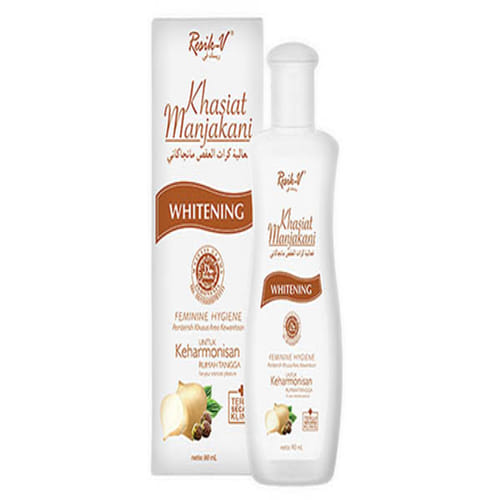 Resik V Khasiat Manjakani Whitening 90 Ml adalah cairan pembersih kewanitaan yang telah bersertifikat halal dan berguna untuk membersihkan organ wanita dari rasa gatal, bau tidak sedap, dan keputihan. Tidak hanya itu, pembersih wanita ini juga mampu menjadikan area kewanitaan lebih cerah dan kencang. Berbagai khasiat yang dimiliki Resik V Khasiat Manjakani Whitening 90 Ml ini tidak terlepas dari bahan alami yang digunakan, yaitu ekstrak manjakani dan bengkuang.