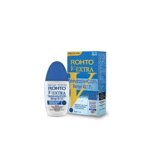 - Konsultasikan ke dokter mengenai penggunaan Rohto V- Extra Tetes Mata 7 Ml jika Anda sedang menderita glaukoma, penyakit jantung, tekanan darah tinggi, diabetes, infeksi mata, atau hipertiroidisme.