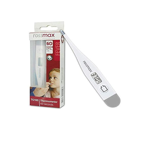 Rossmax Thermometer TG 100 adalah termometer digital yang dapat membaca suhu dengan akurat dan cepat. Termometer ini juga memiliki desain yang lebih fleksibel sehingga tidak mudah patah.