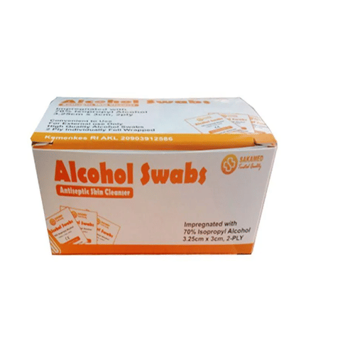 Sakamed Alkohol Swabs 1 Piece digunakan sebagai antiseptik untuk mensterilkan permukaan kulit sebelum dan sesudah disuntik