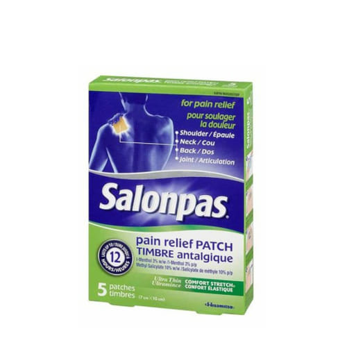Salonpas Pain Relief 5 Patch mengandung metil salisilat dan l-mentol. Kedua bahan ini bekerja dengan cara memberikan sensasi dingin di awal, kemudian sensasi hangat yang bertahan lebih lama. Efek ini dapat memberikan rasa nyaman dan mengalihkan perhatian dari rasa nyeri.