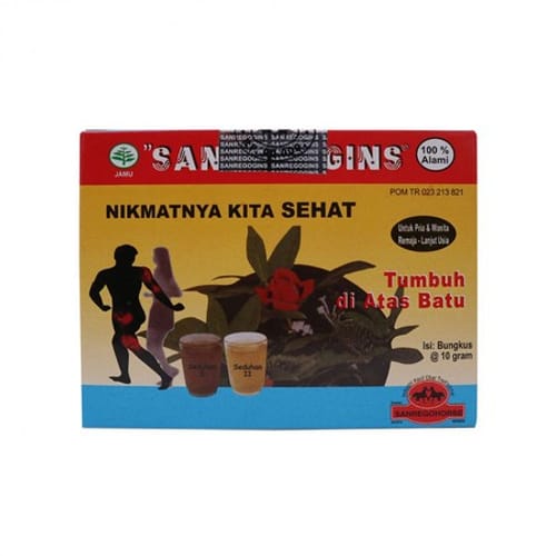 Adalah jamu dengan bahan batang/kayu sanrego (Lunasia lignum) dan daun Sanrego (Lunasia folium) yang bermanfaat untuk membantu menjaga kesehatan.