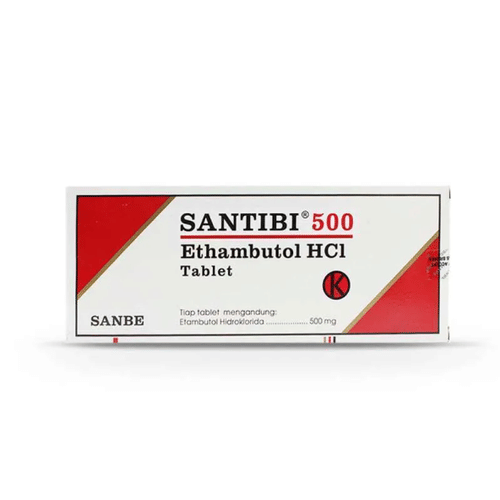 Santibi 500 mg 10 Tablet adalah antibiotik yang bekerja dengan cara menghentikan pertumbuhan bakteri penyebab tuberkulosis. Pada pengobatan tuberkulosis, obat ini dikombinasikan dengan obat lain, seperti isoniazid, pyrazinamide, atau rifampicin.