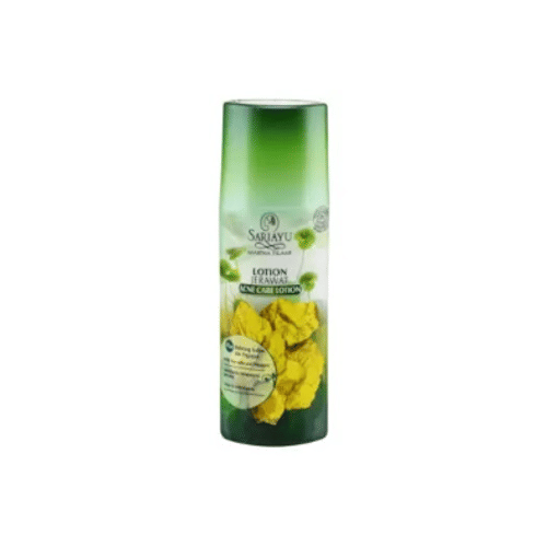 Sariayu Lotion Jerawat mengandung belerang halus dan Centella Asiatica Extract (ekstrak pegagan) yang dipercaya dapat mengeringkan jerawat dengan cepat di saat jerawat meradang serta merawat kulit berjerawat secara intensif.