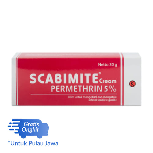 Scabimite 5% Cream mengandung bahan aktif permethrin. Obat ini bekerja dengan cara menghancurkan sel parasit, sehingga dapat membunuh tungau atau kutu berserta dengan telur yang menyebabkan keluhan.