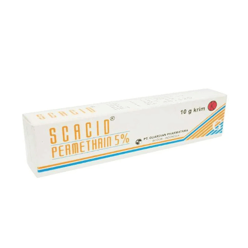 Scacid 5% Cream bermanfaat untuk mengobati dan mengatasi infeksi parasit pada kulit, seperti kudis (scabies).