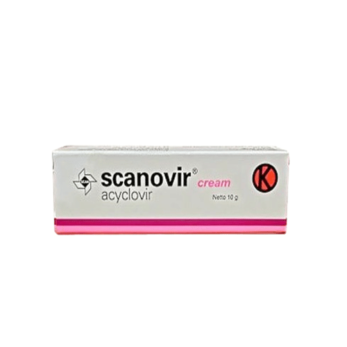 Scanovir 5% Krim 10 g mengandung acyclovir. Obat ini dapat mencegah penyebaran virus herpes sekaligus meredakan keluhan akibat herpes, seperti luka lepuh atau nyeri.