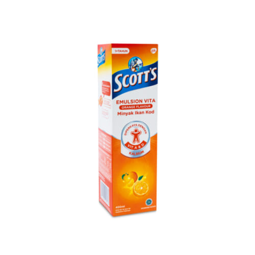 - Segera bawa anak ke dokter jika anak mengalami reaksi alergi atau overdosis setelah mengonsumsi Scott's Emulsion Vita Rasa Jeruk.