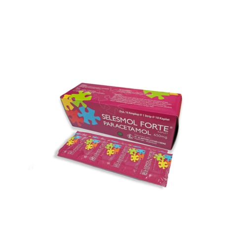Selesmol Forte 650 mg 10 Tablet bermanfaat untuk meredakan demam dan rasa sakit, termasuk sakit kepala atau sakit gigi.