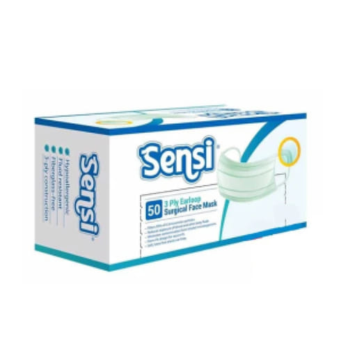 Sensi Mask 3-Ply Earloop Surgical Face Mask merupakan masker 3 lapis yang lembut dan membuat penggunanya mudah bernapas. Selain itu, masker ini terbuat dari bahan bebas lateks dan fiberglass, serta memiliki penyepit hidung yang tidak terbuat dari logam, sehingga lebih nyaman untuk dipakai sehari-hari.