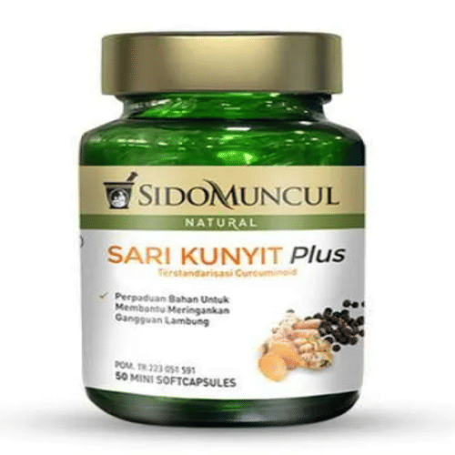 Sido Muncul Natural Sari Kunyit Plus 50 kapsul adalah suplemen herbal yang terbuat dari ekstrak kunyit alami yang bermanfaat untuk menjaga kesehatan tubuh. Berikut ini adalah manfaat, saran penyajian, dan hal-hal yang perlu diperhatikan dari konsumsi Sido Muncul Natural Sari Kunyit Plus 50 kapsul.