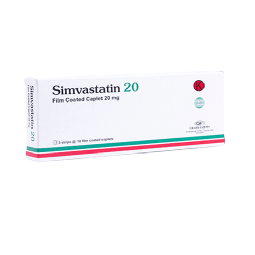 Simvastatin 20 mg Tablet bermanfaat untuk menurunkan kadar kolesterol jahat dan trigliserida yang tinggi di dalam darah.