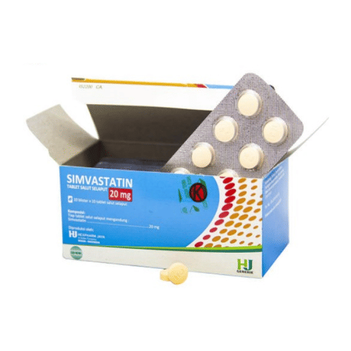 Simvastatin 20 mg Tablet bermanfaat untuk menurunkan kadar kolesterol jahat dan trigliserida yang tinggi di dalam darah.