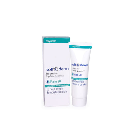 Soft U Derm Intensive Hydro-Protect Forte 20 Daily Cream bermanfaat untuk melembutkan dan melembapkan kulit, serta mengatasi kulit kering pada penderita psoriasis dan dermatitis atopik.