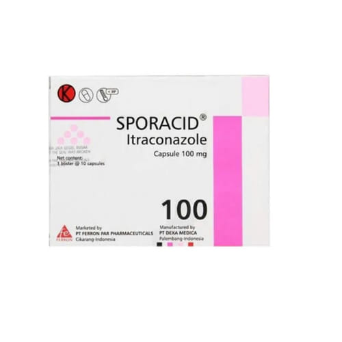 Sporacid 100 mg bermanfaat untuk mengatasi infeksi jamur di berbagai bagian dan area tubuh dan mencegah infeksi jamur pada seseorang dengan sistem imun yang lemah.