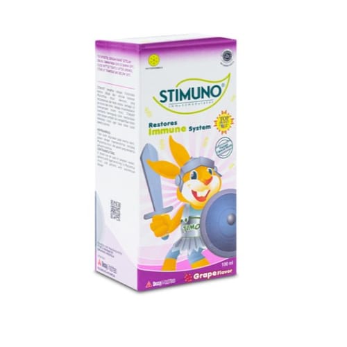 Stimuno Sirup Rasa Anggur 100 ml bermanfaat untuk meningkatkan kerja sistem imun atau sistem kekebalan tubuh.