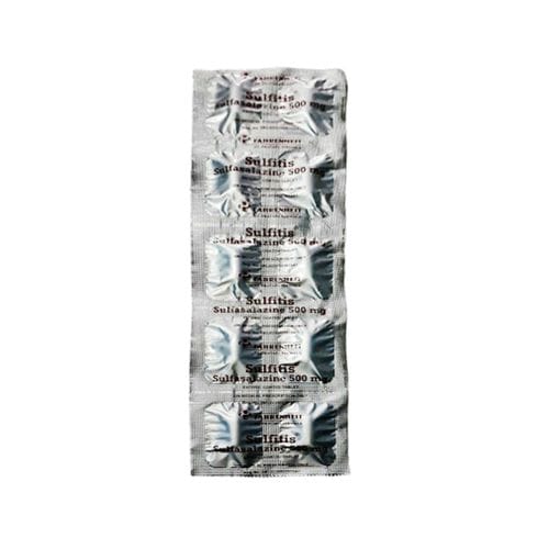 Sulfitis 500 mg tablet mengandung bahan aktif sulfasalazin 500 mg yang bekerja dengan cara menekan timbulnya peradangan di dalam tubuh. Obat ini digunakan untuk mengobati peradangan pada dinding saluran pencernaan (kolitis ulseratif). Dapat dikonsumsi setelah makan, pastikan kecukupan asupan cairan. Konsultasikan terlebih dahulu kepada dokter apabila akan digunakan pada pasien dengan kondisi: *Riwayat alergi terhadap kandungan obat ini. *Pasien dengan gangguan ginjal dan diskrasia darah. *Pasien dengan penyakit asma bronkial atau kondisi alergi. *Defisiensi G6PD. *Wanita hamil dan menyusui. Interaksi dapat terjadi apabila digunakan bersamaan dengan obat-obatan seperti: *Digoksin: menurunkan kadar digoxin serum. *Asam folat: mengganggu penyerapan obat asam folat.