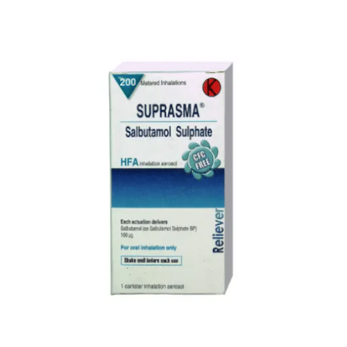 Suprasma Inhaler 100 Mcg 200 Dosis bermanfaat untuk mengatasi sesak napas akibat penyempitan saluran udara di paru-paru (bronkospasme).