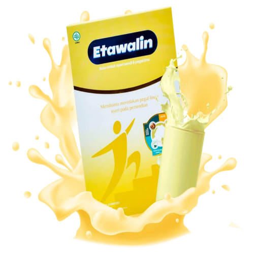 - Campurkan 2-3 sendok makan Susu Etawalin dengan 200 ml air hangat, aduk hingga larut.