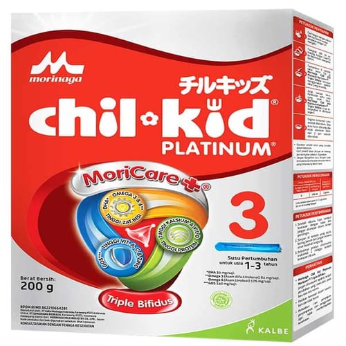 Chil Kid 3 Platinum Plain 200 G merupakan susu formula untuk bayi usia 1-3 tahun. Produk ini Diperkaya dengan kolin, omega 3, omega 6, dan zat besi yang dapat membantu melengkapi kebutuhan nutrisi anak Anda.