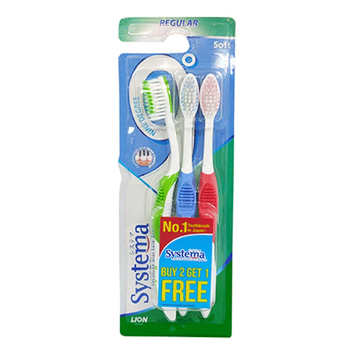 Systema Toothbrush Nine Degree Reguler 3 pcs adalah sikat gigi yang dirancang dengan teknologi sembilan derajat untuk membersihkan gigi secara efektif dan menyeluruh.