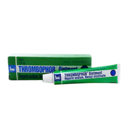Thrombophob Salep 15 Gram mengandung heparin natrium dan benzyl nicotinate. Obat ini bekerja dengan cara menghambat kerja protein yang berperan dalam proses pembekuan darah.