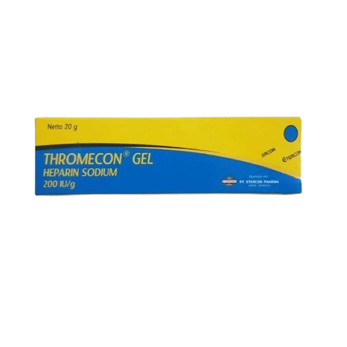 Thromecon Gel 20 g mengandung heparin bekerja dengan cara menghambat kerja protein yang berperan dalam proses pembekuan darah, sehingga pembentukan bekuan dan gumpalan darah bisa dicegah. Namun, Thromecon Gel 20 g tidak bisa digunakan untuk mengurangi bekuan darah yang sudah terbentuk.