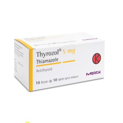 Thyrozol 5 mg Tablet bermanfaat untuk mengatasi hipertiroidisme. Obat ini juga bisa digunakan sebelum pasien menjalani operasi tiroid atau terapi iodium radioaktif.