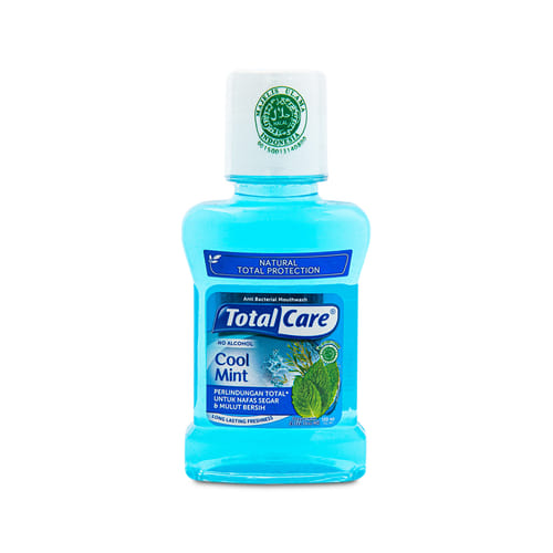 Total Care Mouthwash Cool Mint merupakan obat kumur yang mengandung fluoride untuk mengurangi pertumbuhan bakteri dan plak, sehingga dapat mencegah gigi berlubang, menjaga kesehatan gusi, dan memperkuat gigi.