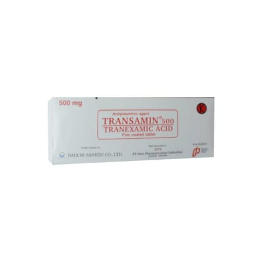 Transamin 500 mg Tablet mengandung asam traneksamat. Obat ini bekerja dengan cara menghambat hancurnya bekuan darah yang sudah terbentuk saat terjadi perdarahan. Dengan demikian, perdarahan bisa berhenti.