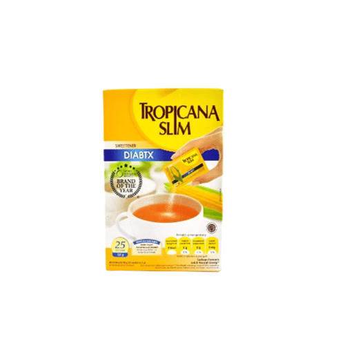 Tropicana Slim Sweetener Diabtx 25 Sachet adalah produk pengganti gula yang yang berasal dari pengolahan gula tebu menjadi gula bebas kalori. Produk pengganti gula pasir ini bisa digunakan oleh seseorang yang sedang menjalani pola makan rendah kalori.