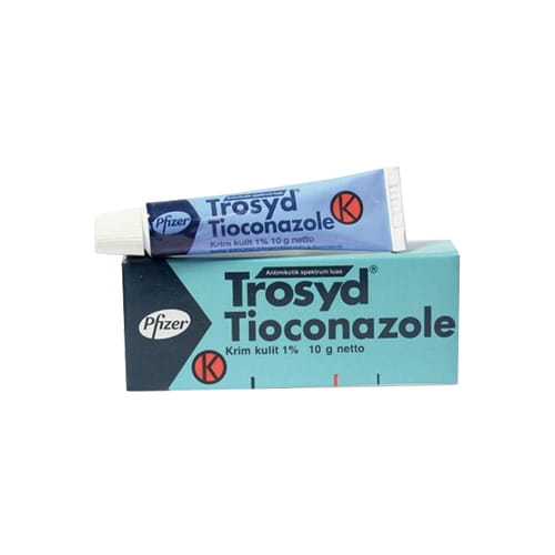 Trosyd 1% Krim merupakan antijamur yang mengadung Tioconazole. Obat ini digunakan untuk mengatasi infeksi pada kulit yang disebabkan jamur, seperti tinea versikolor, tinea pedis berat, infeksi dermatofita, kanidiasis, dan eritrasma.