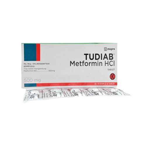 Tudiab 500 Mg 10 Tablet bermanfaat untuk menurunkan kadar gula darah pada penderita diabetes tipe 2.
