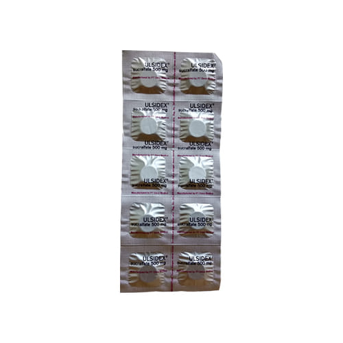 Ulsidex 500 mg adalah obat yang mengandung sucralfate, suatu senyawa kompleks aluminium hidroksida dan sukrosa sulfat yang berfungsi sebagai antasida.